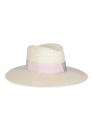 Chapeau de paille avec ruban bicolore rose et bleu pâle de D'Estrée