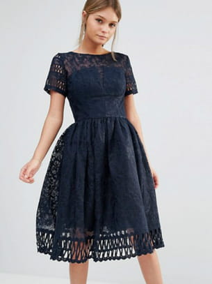 Robe patineuse en dentelle marine de Chic Chi London sur Asos