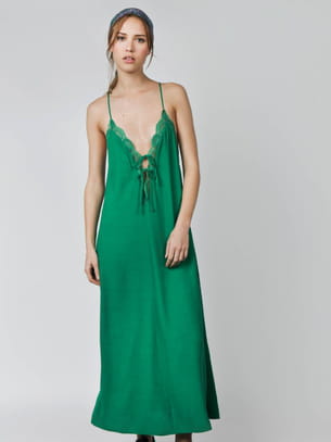 Robe longue à fines bretelles et dentelle verte de Les Petites