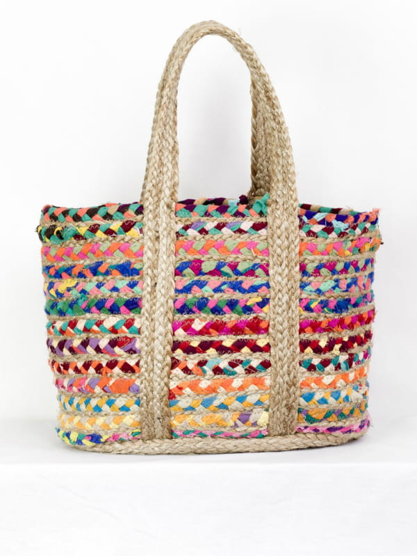 Panier cabas carré tressé en jute avec fils multicolores de Jamini