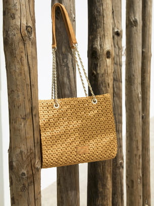 Sac panier porté épaule avec anses chaînes en cuir couvert de raphia canné de Balzac Paris