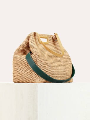 Sac panier bandoulière en raphia avec anses et détails en cuir coloré de Maje