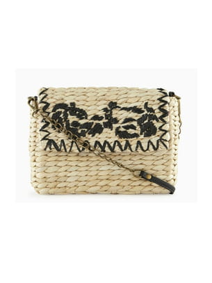 Petit sac en paille tressée et brodée à bandoulière avec chaîne de Promod