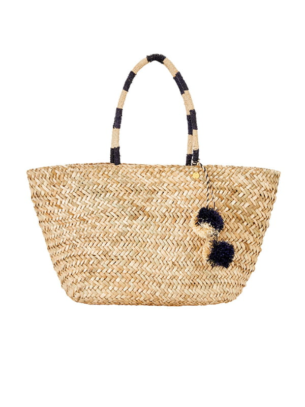 Panier cabas tressé avec pompons bleu marine de Seafolly