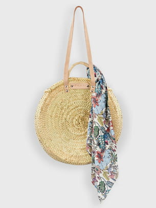Grand sac panier rond en feuilles de palmier tressées à la main au Maroc avec foulard amovible de Marie Sixtine X Sook Paris