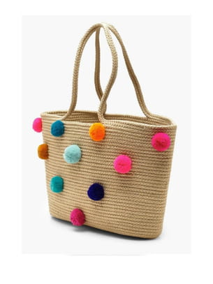 Panier cabas tressé avec pompons multicolores de Boohoo