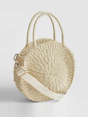 Grand sac panier rond tressé crème porté bandoulière avec anse en tissu de Gap