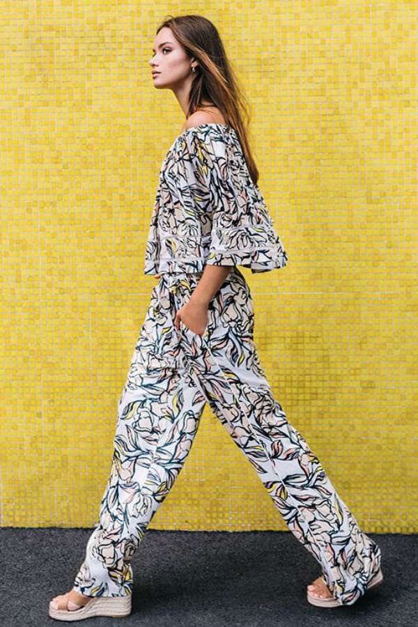 Pantalon large taille haute imprimé multicolore de Suncoo