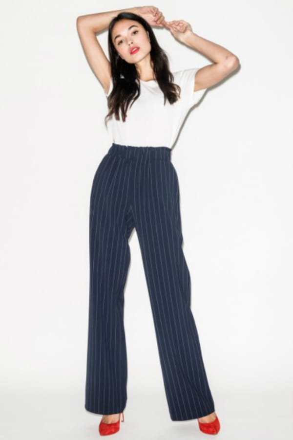 Pantalon taille haute fluide rayé marine de Sinquanone