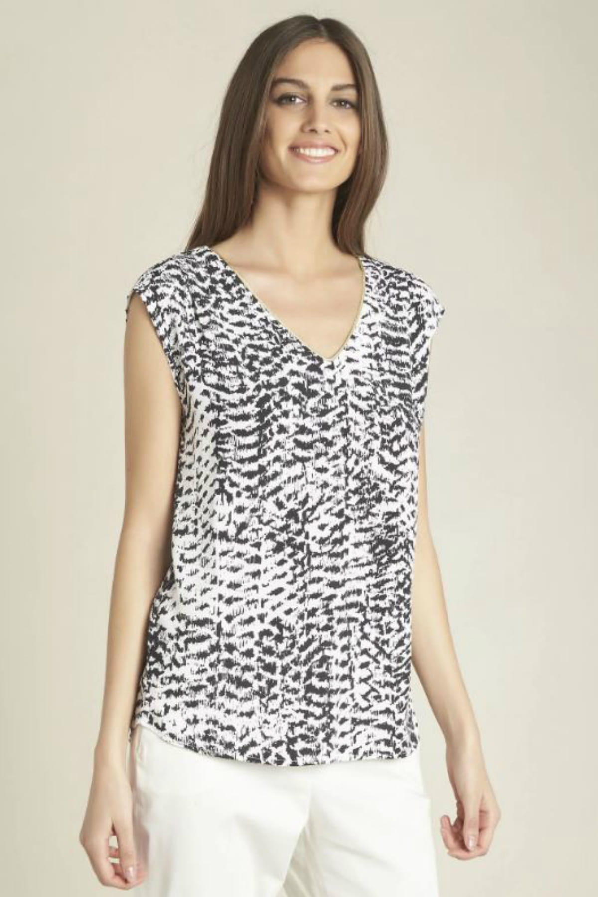 Top col v à imprimé fantaisie noir et blanc de 1.2.3