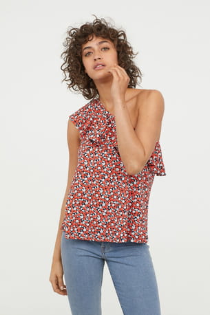 Top asymétrique imprimé de fleurs colorées de H&M
