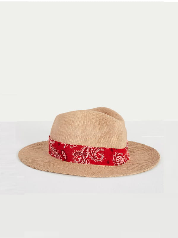 Panama en paille à galon imprimé d'un motif cachemire rouge de Ba&sh