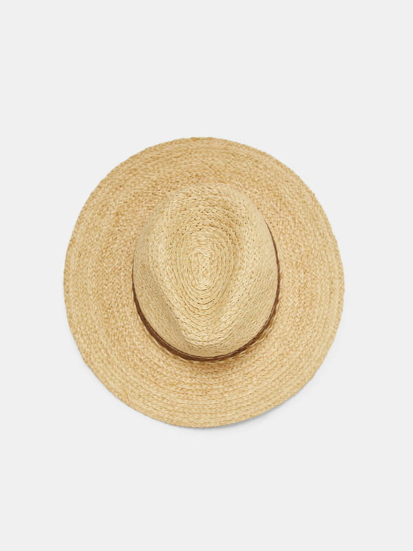 Chapeau en raphia beige avec galon plus foncé de Zara