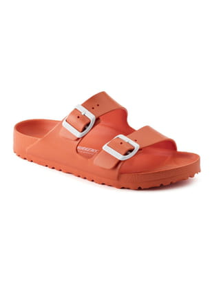 Mules en plastique corail avec sangles blanches de Birkenstock