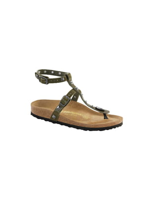 Nu-pieds en cuir naturel kaki parés de clous argentés de Birkenstock