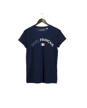 T-shirt en coton bio bleu marine avec drapeau bleu/blanc/rouge et message en blanc de Florette Paquerette