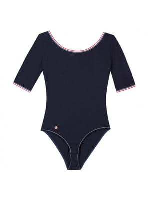 Body en coton bleu marine dos décolleté rond et manches courtes avec liseré rayé bleu/blanc/rouge aux manches et le long de l'encolure du Slip Français