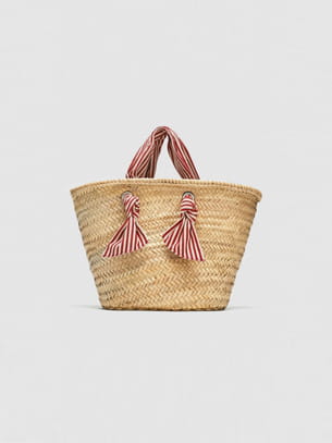 Panier cabas à poignées en tissu rayé rouge et blanc de Zara