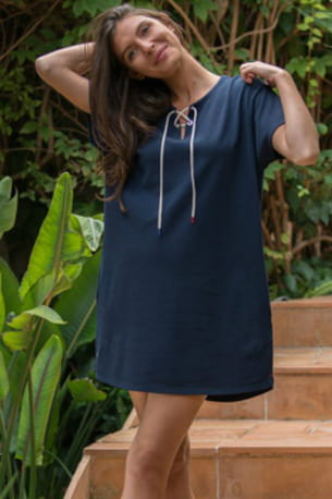 Robe courte à manches courtes et à lacet marine de Le slip Français
