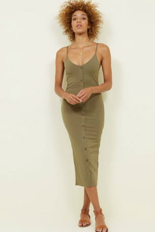 Robe 7/8ème à boutons kaki de New Look