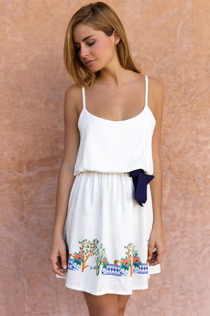 Robe courte à bretelles ceinture blanche de Daiva