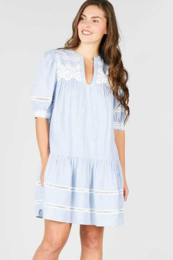 Robe courte brodée bleue de Dehry