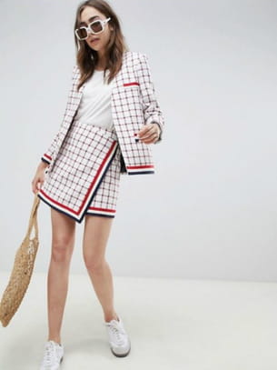 Mini jupe ajustée bleue, blanche et rouge à carreaux de Asos