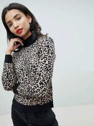 Pull en maille fine à encolure montante imprimé animal de Asos