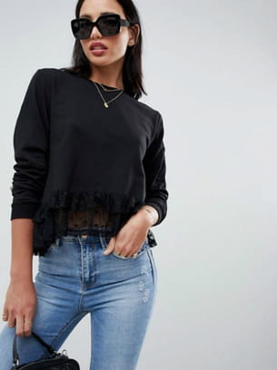 Sweat noir évasé à double volants en tulle plumetis de Asos
