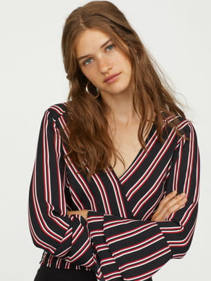 Blouse croisée à rayures colorées et manches évasées de H&M