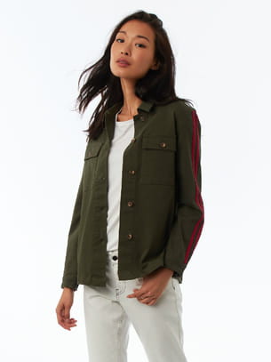 Blouson kaki boutonné à poches et bandes rouges de Etam