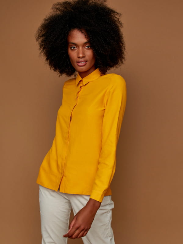 Chemisier simple et uni de couleur moutarde de Etam