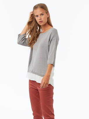 Pull gris et blanc bimatière à manches 3/4 de Etam