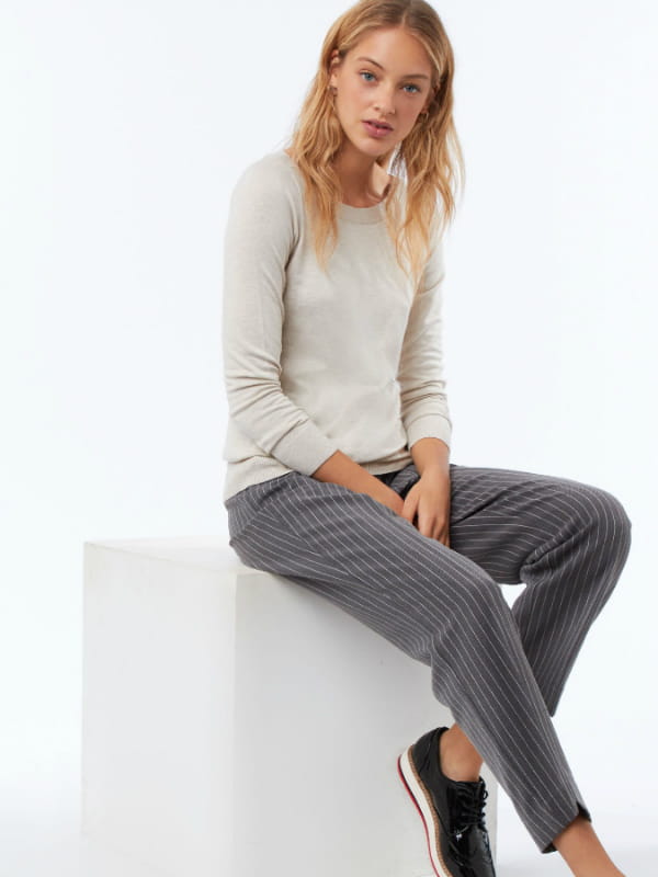 Pantalon taille haute habillé gris à fines rayures et large ceinture de Etam