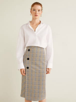 Jupe crayon portefeuille à carreaux de Mango