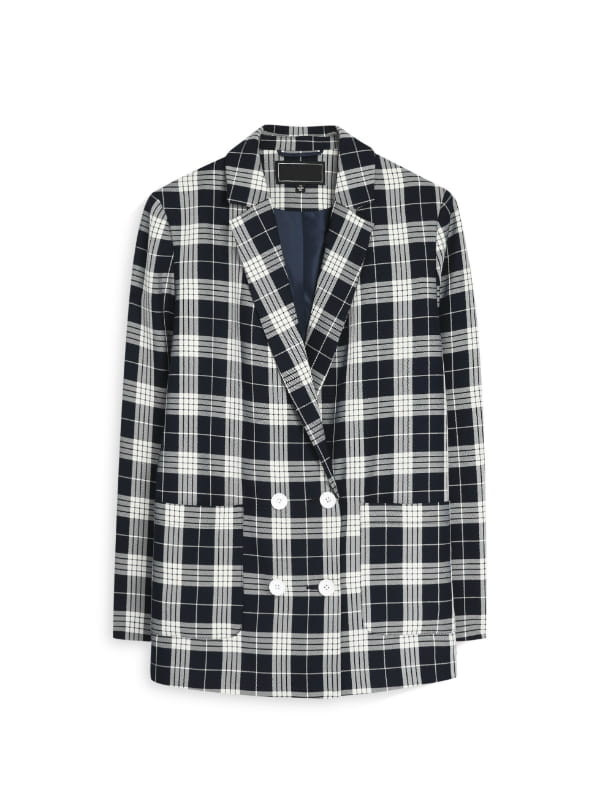 Blazer à carreaux blancs et bleu marine à grandes poches de Primark