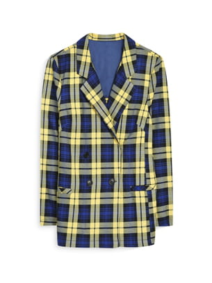 Blazer boutonné à imprimé tartan bleu marine et jaune de Primark