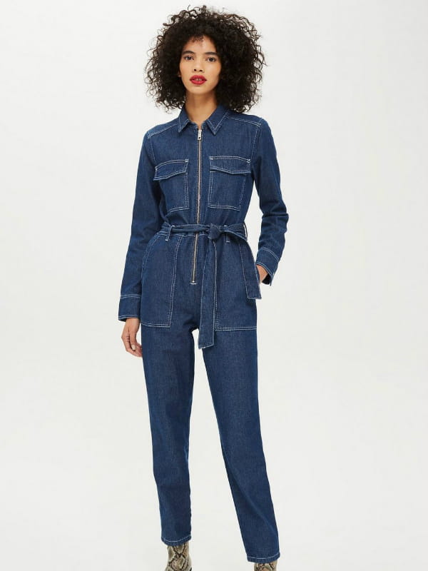 Combinaison pantalon zippée style militaire en denim bleu de Topshop