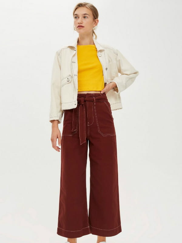 Jupe-culotte avec coutures en contraste marron de Topshop