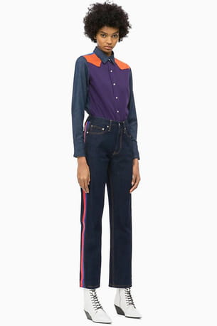 Jean taille haute droit à bandes brut bleu de Calvin Klein