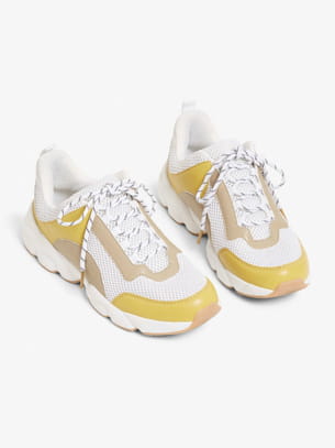 Sneakers tricolores jaune, beige, blanc et lacées de Monki