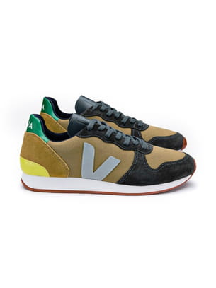 Sneakers multicolores camel, noir, vert, jaune, gris et lacées de Veja chez Clare V.