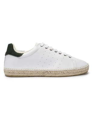 Sneakers espadrilles en cuir et daim bicolores blanc, kaki foncé et lacées de Canal St Martin
