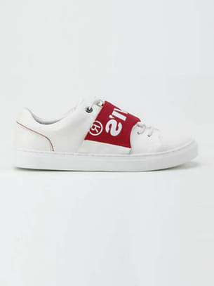 Sneakers en cuir blanc et lacées avec gros logo sur le dessus de Levi's