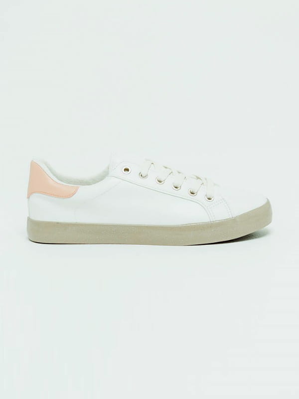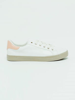 Sneakers bicolore blanc, rose pâle et lacées de Pimkie