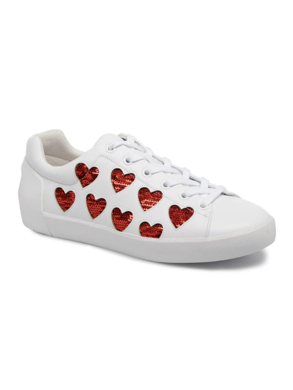 Sneakers blanches en cuir et lacées avec cœurs en sequins sur les côtés de Ash sur Sarenza