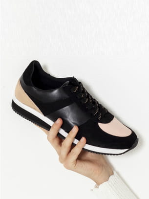 Sneakers tricolores noir, rose pâle, blanc de Camaïeu