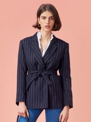 Veste à rayures tennis ceinturée marine de Rouje