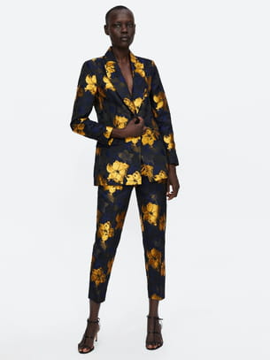 Costume veste et pantalon 7/8ème en jacquard à fleurs dorées de Zara