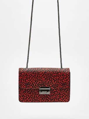 Petit sac rigide noir à imprimé tâches rouges avec bandoulière chaîne de Bershka